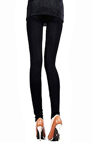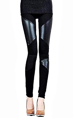 Leggins donna - ragazza - inserti - ecopelle - elasticizzato - taglia unica - nero - idea regalo