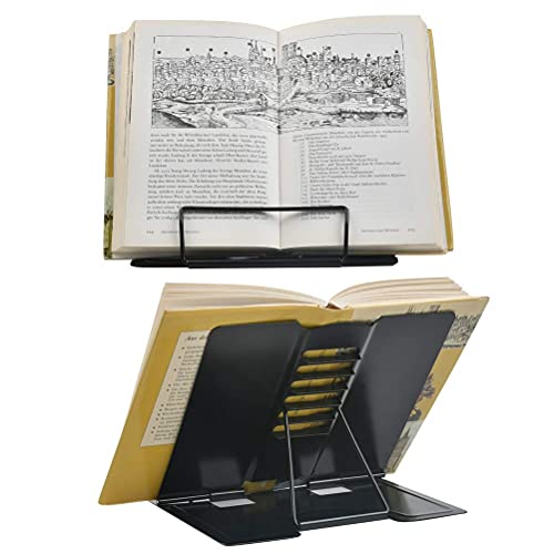 Leggio Libri Regolabile Supporti per Libri da Cucina in Metallo, Leggio da Letto per Libri Leggio Ricette da Cucina Supporto Regolabile per Ricettario con 6 Altezze Regolabili per iPad Tablet 21*19cm