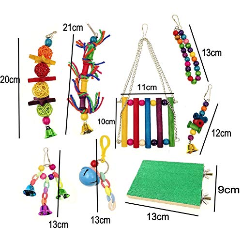 JZK Set 8 x Legno giocattoli per uccelli uccellini in gabbia, giocattoli da appendere a battente, triturazione, posatoi da masticare, giocattoli per pappagalli cacatua parrocchetti uccellini canarini