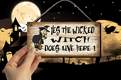 Funny Sign targa da parete in legno Shabby Chic occasione. Sì la strega cattiva Live Here eccellente idea regalo