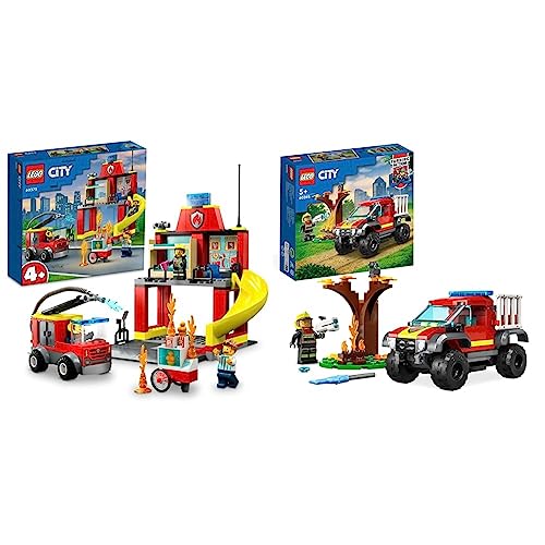 LEGO 60375 City Fire Caserma dei Pompieri e Autopompa con Camion Giocattolo dei Vigili del Fuoco & 60393 City Fire Soccorso sul Fuoristrada dei Pompieri, Camion Giocattolo dei Vigili del Fuoco