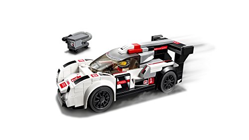 L'Audi R18 e-tron quattro, costruibile e predisposta per le competizioni, ha spazio per una minifigure ed è dotata di parabrezza rimovibile, 2 set di cerchi intercambiabili, più logo Audi autentico e adesivi per i fari