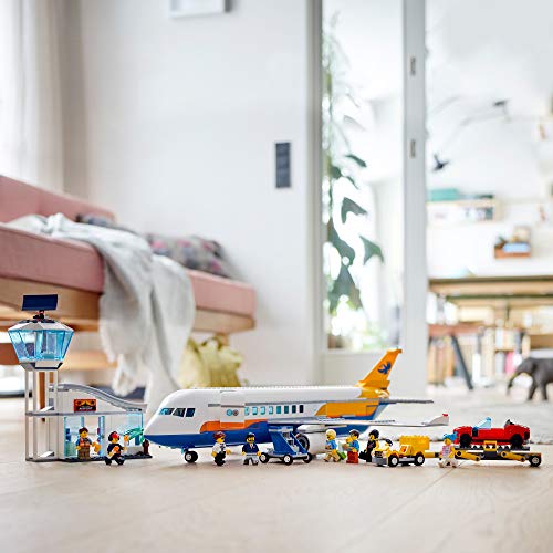 LEGO City Passenger Airplane 60262, with Radar Tower, Airport Truck with a Car Elevator, Red Convertible, 4 Passenger and 4 Airport Staff Minifigures, Plus a Baby Figure, New 2020 (669 Pieces)