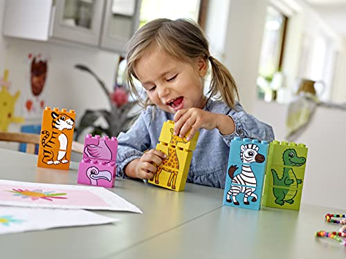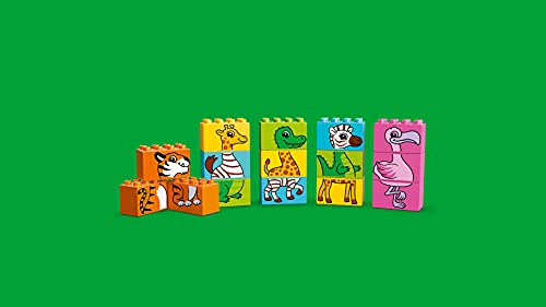 Contiene 5 animali-puzzle LEGO DUPLO costruibili: un fenicottero, una zebra, una giraffa, un coccodrillo e una tigre