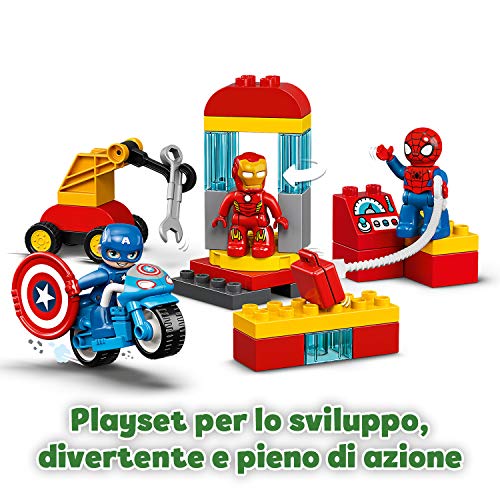 LEGO Duplo Super Heroes Marvel Il Laboratorio dei Supereroi, Iron Man, Capitan America e Spider-Man Giocattolo, Giochi per Bambini di 2+ Anni, 10921