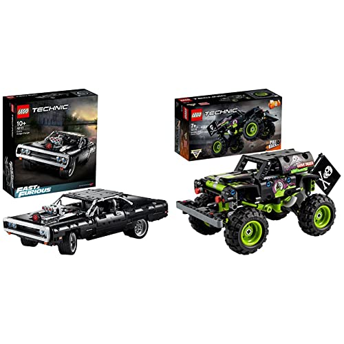 LEGO Technic Dom's Dodge Charger Fast & Furious, Modello di Auto da Corsa Iconico & Technic Monster Jam Grave Digger, Kit 2 in 1 da Truck a Buggy