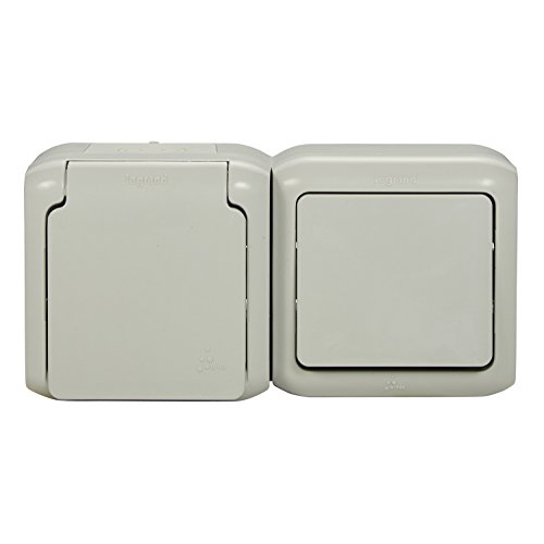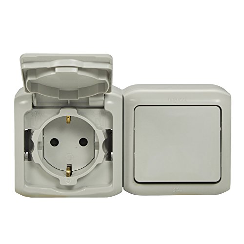 Legrand 782391 forix ambienti umidi AUFPUTZ interruttore combinazione (orizzontale) IP44, Presa con contatto di protezione & Coperchio, per il montaggio a parete, Standard Bianco