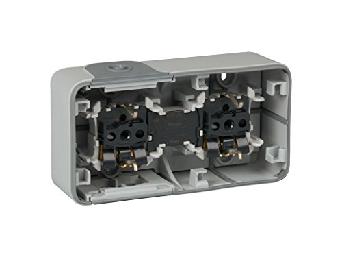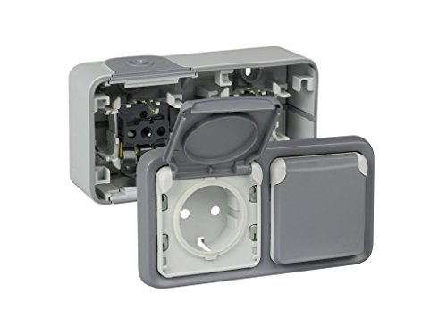 Legrand Plexo - Doppia presa di corrente con coperchio, montaggio in superficie, Moderno Colore: grigio
