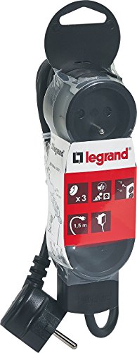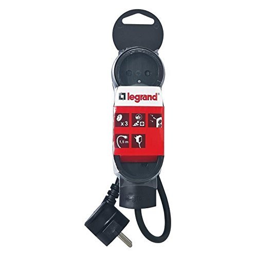 Legrand - Prolunga multipresa standard, prese con 2 poli, messa a terra, cavo da 1,5 m, nero, LEG50033 3500 wattsW, 230 voltsV