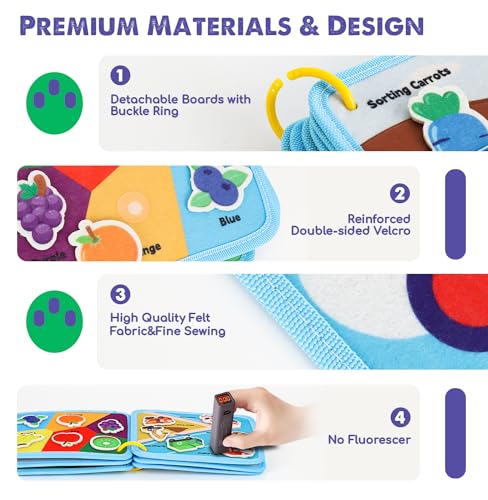 ✅【Coltivare le Abilità Cognitive】Busy Board per bambini include numeri/colori/forme/dimensioni e 4 scenari di vita, che sviluppano le conoscenze di base e migliorano le diverse abilità cognitive abbinando i diversi blocchi adesivi. È un giocattolo perfetto per l'apprendimento precoce dei bambini e un grande giocattolo interattivo per insegnare al bambino queste attività di apprendimento mentre gioca.