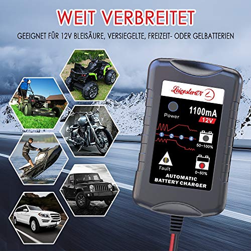 LEICESTERCN caricabatteria per moto 12V 1.1A caricatore completamente automatico caricatore di mantenimento caricabatteria per auto a 4 stadi per auto moto auto auto spina europea