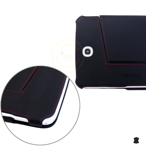 LEICKE Manna - Pregiata custodia protettiva per Samsung Galaxy Note 8.0 N5100 N5110 EF-BN510BGEGWW ultra sottile con tomaia in vero cuoio genuino Nappa in nero con cuciture rosse in contrasto rifinite a mano