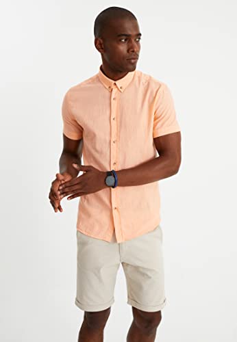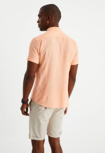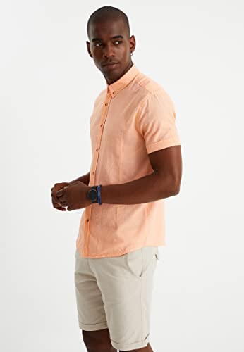 Leif Nelson Camicia in lino da uomo, a maniche corte, in lino, per il tempo libero e il lavoro, misto lino e cotone/vestibilità regolare, rosa salmone, M