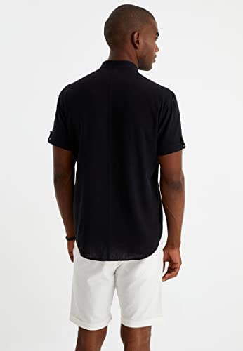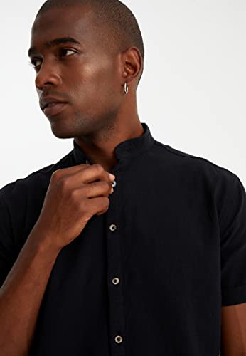 Leif Nelson Camicia in lino da uomo, a maniche corte, per il tempo libero e il lavoro, misto lino e cotone/vestibilità regolare, Nero, L