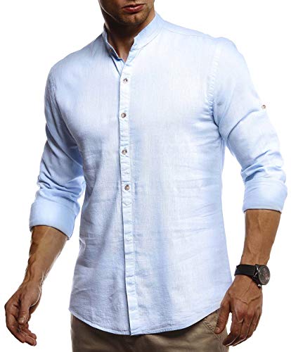 Leif Nelson Camicia da Uomo Maniche Lunga Slim Fit LN-3860 Azzurro X-Large