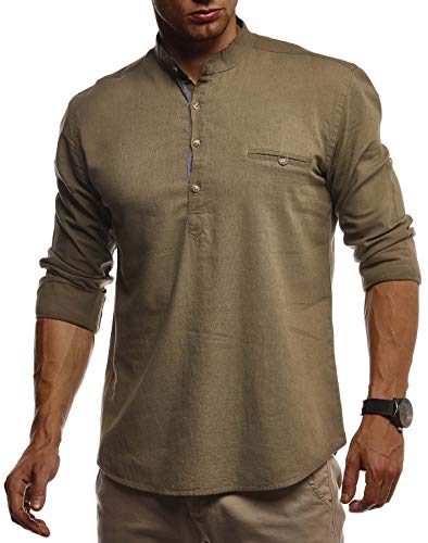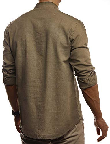 Leif Nelson Camicia da Uomo Maniche Lunga Slim Fit LN-3865 Cachi Small