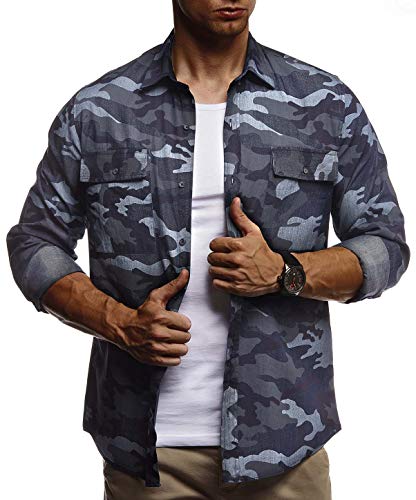 Leif Nelson Camicia da Uomo Maniche Lunga Slim Fit LN-3850 Blu Small