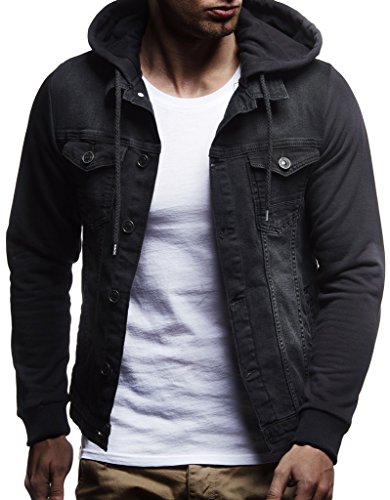 Leif Nelson Giacca di Jeans Uomo con cappuccio LN-5615 Nero XX-Large