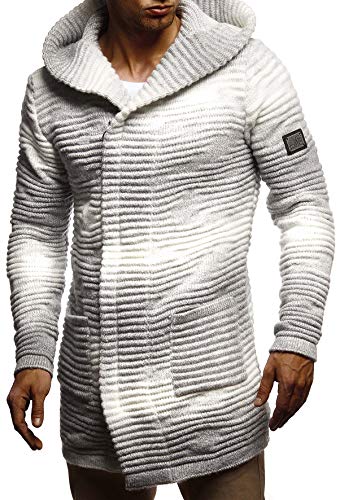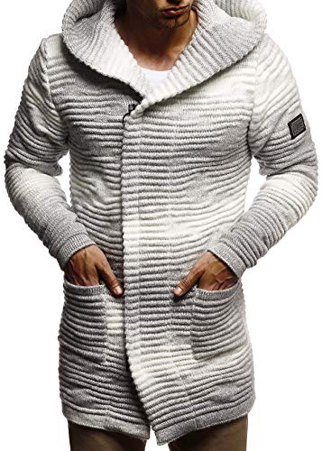 Leif Nelson Giacca Uomo in Maglia con Cappuccio Cardigan LN-5715 Crude Grey XX-Large