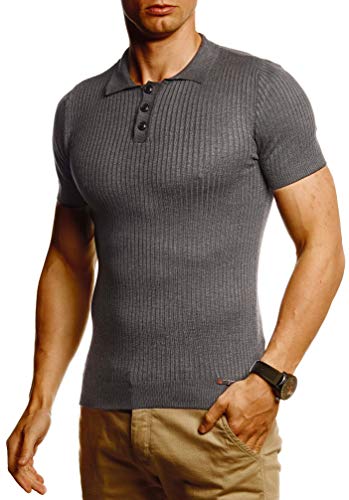 Leif Nelson LN20763 - Polo estiva da uomo a maniche corte, vestibilità aderente, in maglia fine, bianca/nera, basic, antracite., L