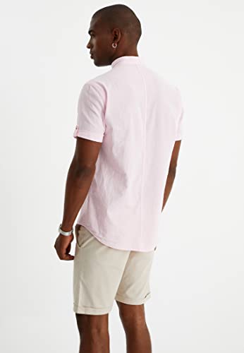 Leif Nelson LN3862 - Camicia da uomo in lino, a maniche corte, per il tempo libero, per ragazzi, Colore: rosa., L