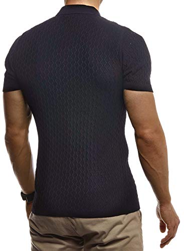 Leif Nelson LN7315, maglietta da uomo estiva con colletto a polo, vestibilità aderente, in maglia fine, bianco, nero, basica, a maniche corte, Nero, M