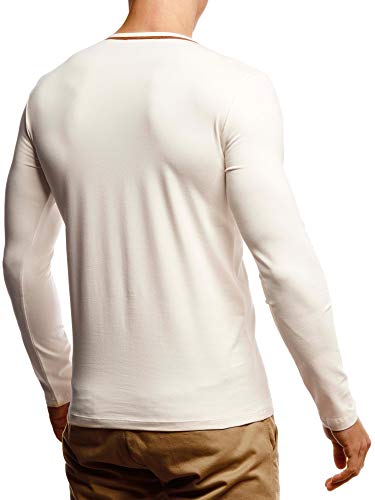 Leif Nelson Maglia a maniche lunghe da uomo con scollo a V, slim fit, in cotone, basic da uomo, felpa estiva a maniche lunghe, con scollo a V, colore nero, LN1470, beige., XXL