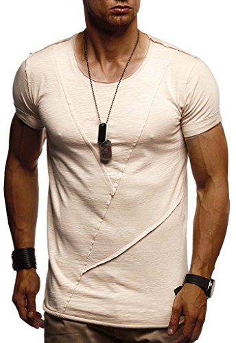 Leif Nelson Maglietta estiva da uomo, scollo rotondo, slim fit, in cotone, moderna, girocollo, maniche corte, LN8221 beige. XXL