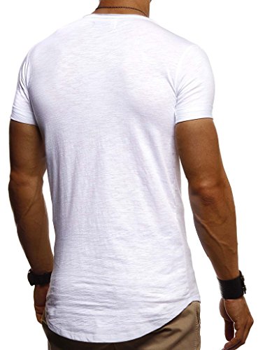 Leif Nelson - Maglietta estiva da uomo, scollo a girocollo, Slim Fit, in cotone, maglietta da uomo, girocollo, felpa con cappuccio a maniche corte LN8209 bianco XL
