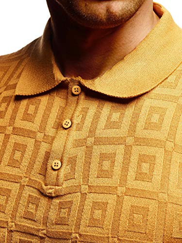 Leif Nelson Maglietta da uomo estiva con colletto a polo slim fit in maglia fine bianco nero basic uomo maglietta a maniche corte top LN7395 senape L