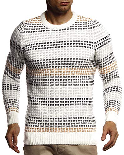 Leif Nelson Maglione Uomo Felpa a Maglia Girocollo LN-20760 Color Crudo XX-Large