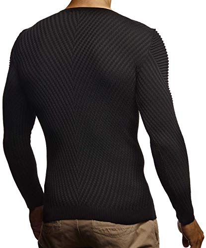 Leif Nelson Maglione Uomo Girocollo Felpa a Maglia LN-1840 Nero X-Large