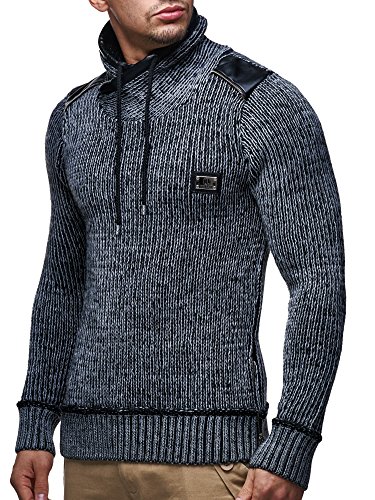 Leif Nelson Pullover da uomo con cappuccio, slim fit, felpa con cappuccio, maglia a maniche lunghe, modello LN7040 antracite. XXXL