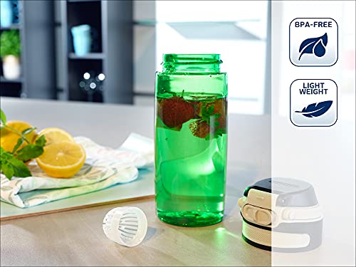 Confezione - Leifheit Flip Tritan borraccia ufficio in tritan trasparente, 550 ml, con chiusura ermetica e apertura facilitata, resistente al calore, colore verde kiwi, articolo numero 3267