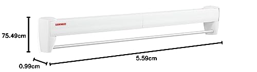 Leifheit Telegant 70 Stendibiancheria da Parete, Stendino Allungabile e Compatto con Portasciugamani, Stendibiancheria Estensibile per Bagno e Balcone