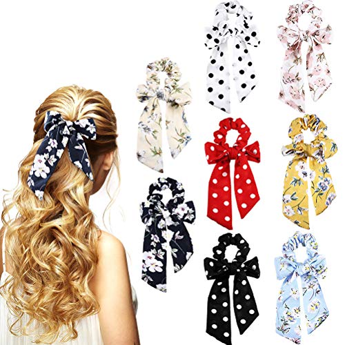 Leikance, elastici per capelli con fiocco, per donne e ragazze, 8 pezzi