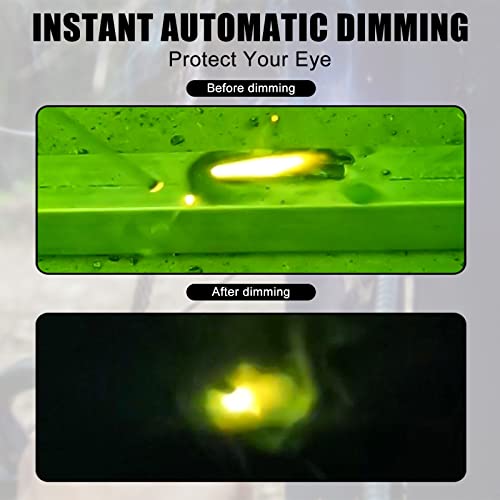Occhiali da saldatura professionali: occhiali da saldatura regolabili per una migliore chiarezza e visualizzazione a colori reali. L'aggiornamento degli occhiali oscuranti automatici con tecnologia riduce al minimo la tradizionale tinta verde lime sugli occhiali da saldatura a energia solare, migliora la visione e riduce l'affaticamento degli occhi.
