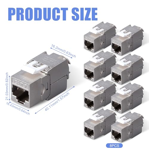 Leikurvo 8 pezzi RJ45 CAT7 Keystone Modulo Jack schermato fino a 10 Gbps, modulo di rete CAT7 Keystone senza attrezzi, schermatura STP RJ45 presa CAT7 Jack, alloggiamento in metallo, ideale per cavi