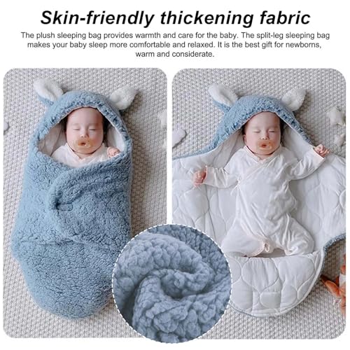 Leikurvo Sacco a pelo per neonato, morbido e imbottito, sacco a pelo con cappuccio, morbido e carino, coperta avvolgente neonato in peluche avvolgente regolabile per neonati blu 0-6 mesi