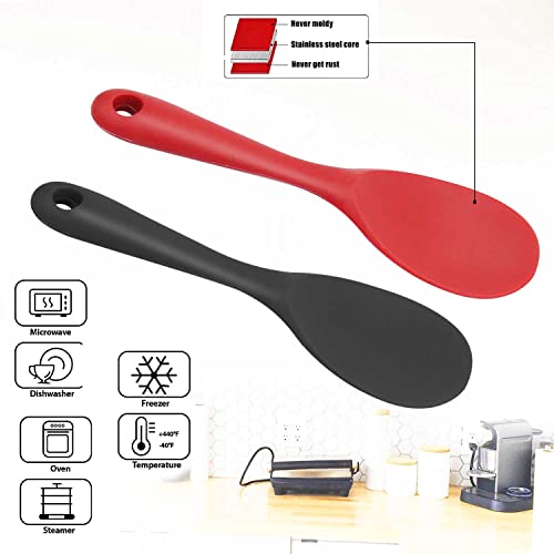 LEIMEND Cucchiaio da Portata Cucchiaio di Riso in Silicone Cucchiai Da Cucina Antiaderenti Resistente al Calore Buono per Purè di Patate, Riso Sushi (2 Pezzi,Nero e Rosso)