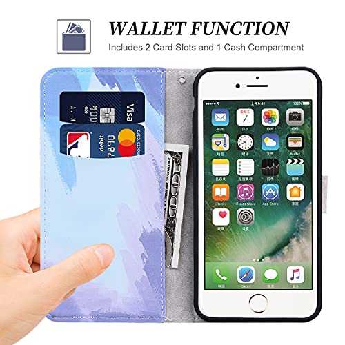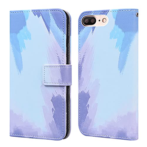 LEINUO Custodia per Cellulare Apple iPhone 7 Plus/iPhone 8 Plus (5.5") Custodia Cover Colori a Contrasto Sfumato, (con Porta Carte Portafoglio Supporto Pieghevole),Winter Snow