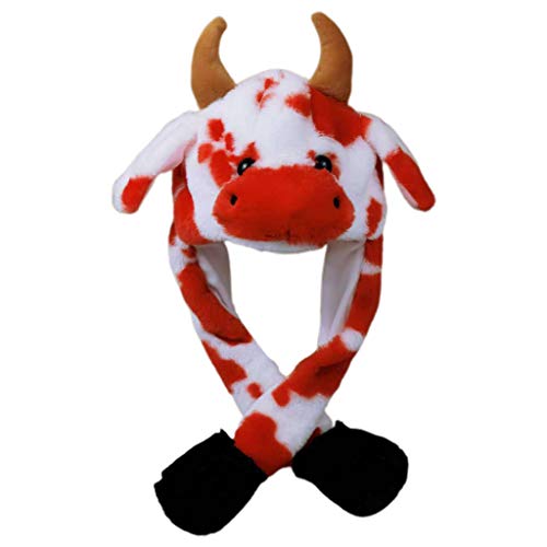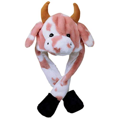 Leiouser - Cappello per adulti e bambini, con orecchie da salto in movimento, multicolore, con LED a forma di mucca, con paraorecchie a LED