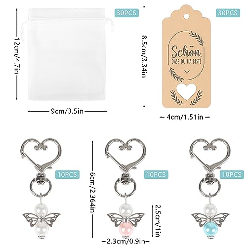 Leiptes Bomboniere Matrimonio Angioletti Set di 30 Portachiavi Cuore Angelo Custode con Borsa in Organza + Etichetta del Regalo della Carta Kraft per Battesimo Comunione Matrimoni Come Regalo