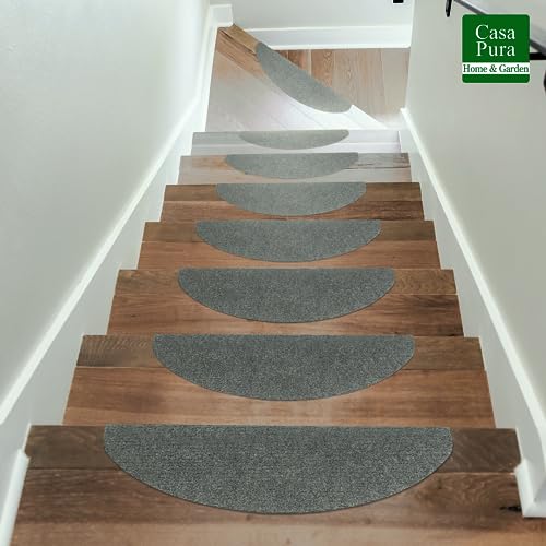 Leipzig - Tappetini per gradini semicircolari, antiscivolo e autoadesivi, per scale, per interni, in 5 colori, (grigio)