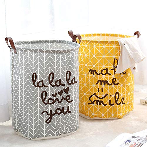 Leisial - Contenitori in cotone e lino, cesto per biancheria, set portaoggetti, con manici, per abiti e giocattoli, Cotone e lino, grigio, M