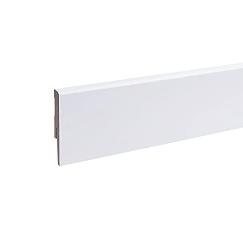 Battiscopa con anima in MDF, come profilo Weimar (pannello di fibra a media densità) nelle dimensioni 80 mm x 17 mm x 2400 mm in bianco lucido