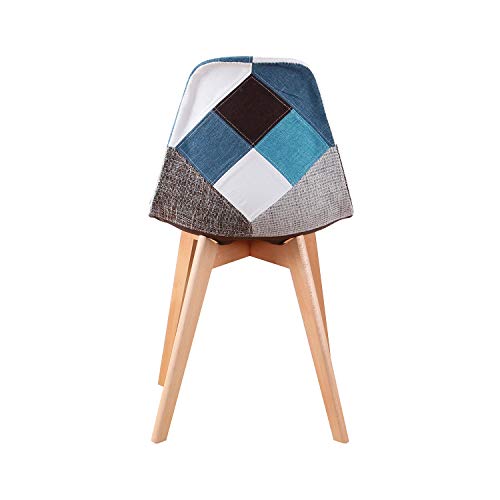 WV LeisureMaster, set di 4 sedie moderne in tessuto patchwork, imbottite, con tasselli, base in legno, ideali per il soggiorno, la sala da pranzo, i bar, le sale d'attesa, ecc. (JX blu)