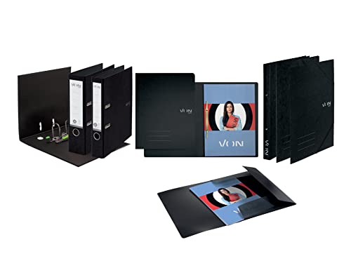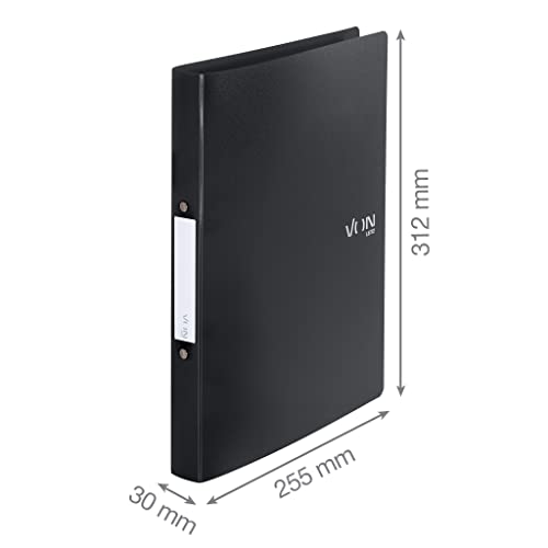 Contenuto della confezione: 5 raccoglitori ad anelli Von A4 con 2 anelli, in polipropilene, 30 mm di larghezza, per 190 fogli, con motivo VON, nero, 42470095