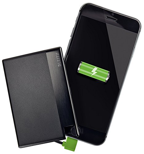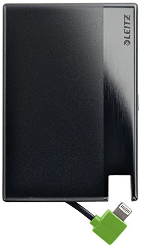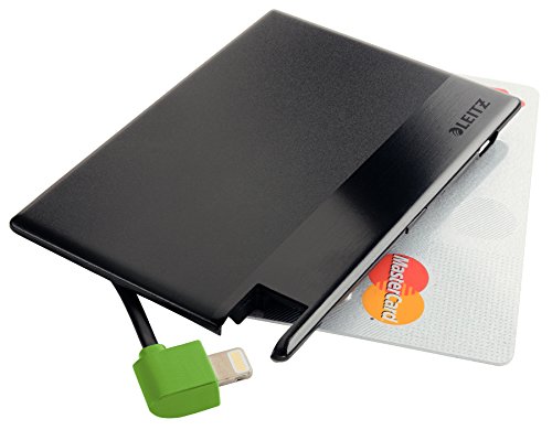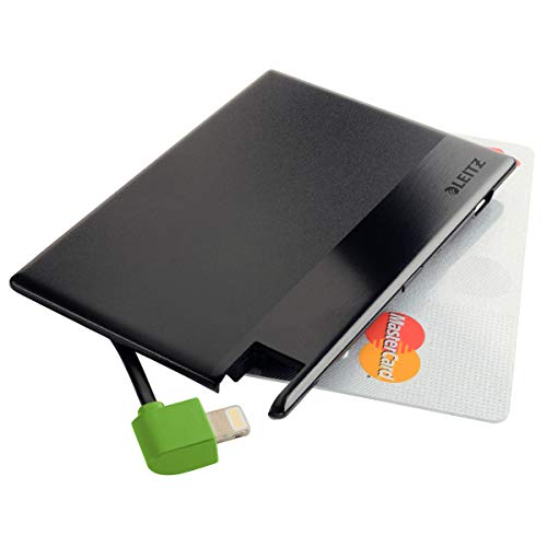 Leitz Complete 65260095 Caricatore Portatile Formato Carta di Credito per iPhone/iPad/iPod da 1350 mAh, Certificato Apple, Nero