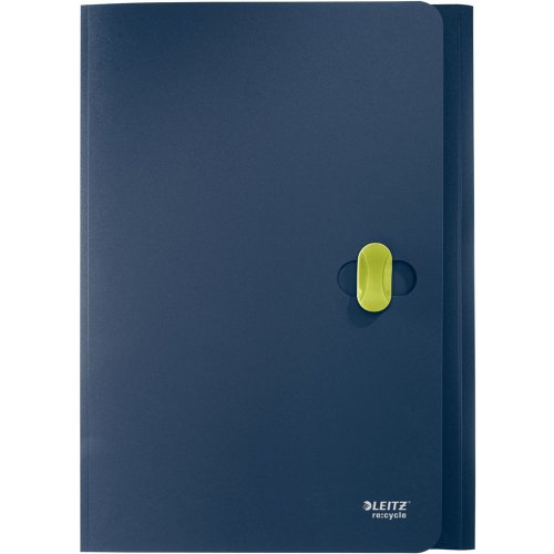 Contenuto: 1 cartella a 3 lembi con chiusura sicura Leitz, Formato A4, Polipropilene riciclato, Blu scuro, 46220069, Dimensioni (LxAxP): 23.5 x 1.1 x 32 cm, Peso 100 g